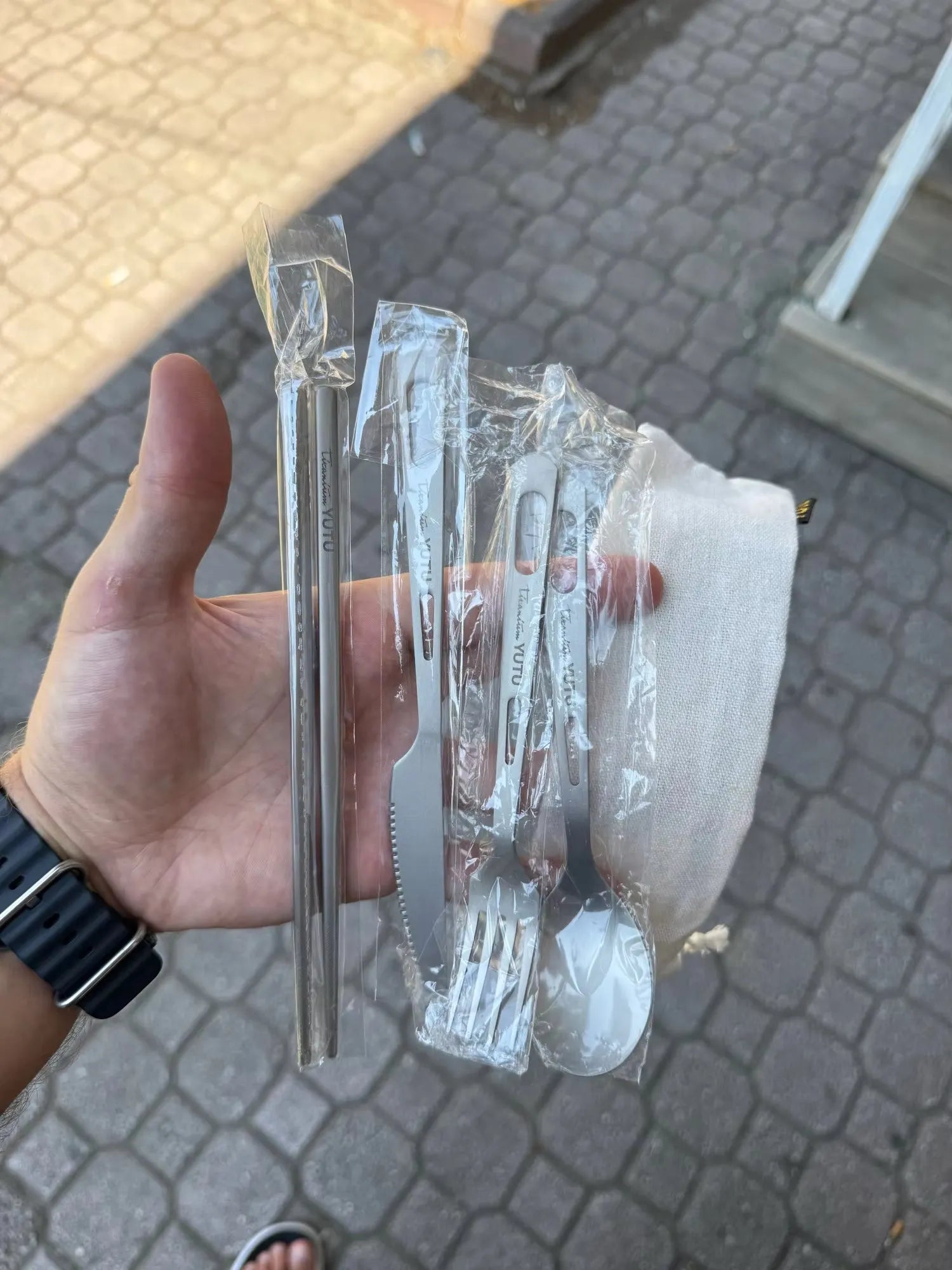 Awesome set. Way better than plastic. Environmentally friendly and easy to carry.