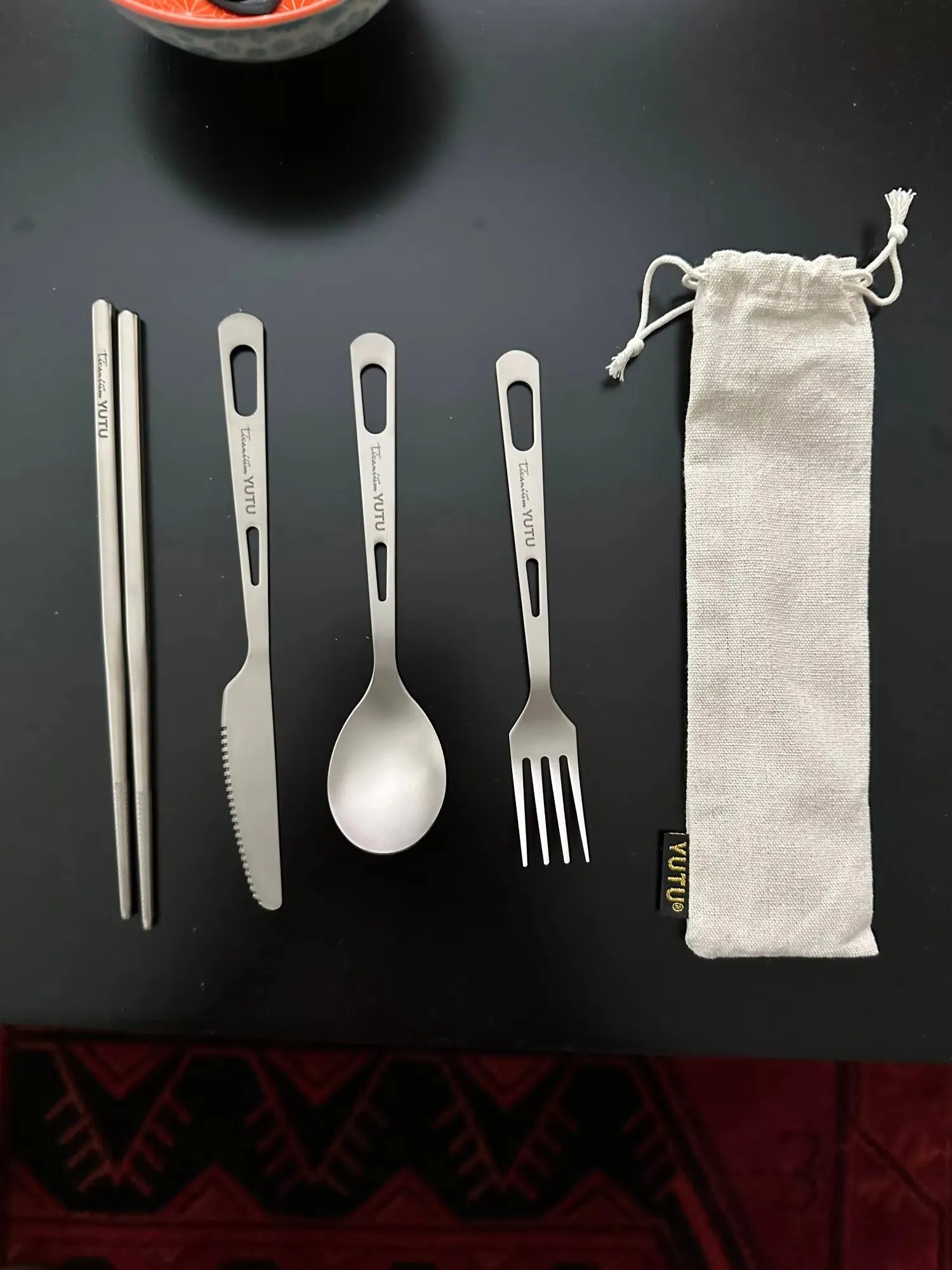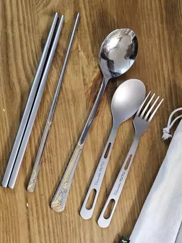 Truly the best investment for our outdoor adventures! This titanium set has been with us through thick and thin. It’s lightweight, easy to clean, and the chic design makes every picnicking experience feel so upscale. We’ve noticed a celeb-like uplift at our campsites, too! πŸ˜„ It’s incredibly durable and still looks brand new after so many trips. I can't imagine going back to flimsy plastic utensils again. Worth every penny!